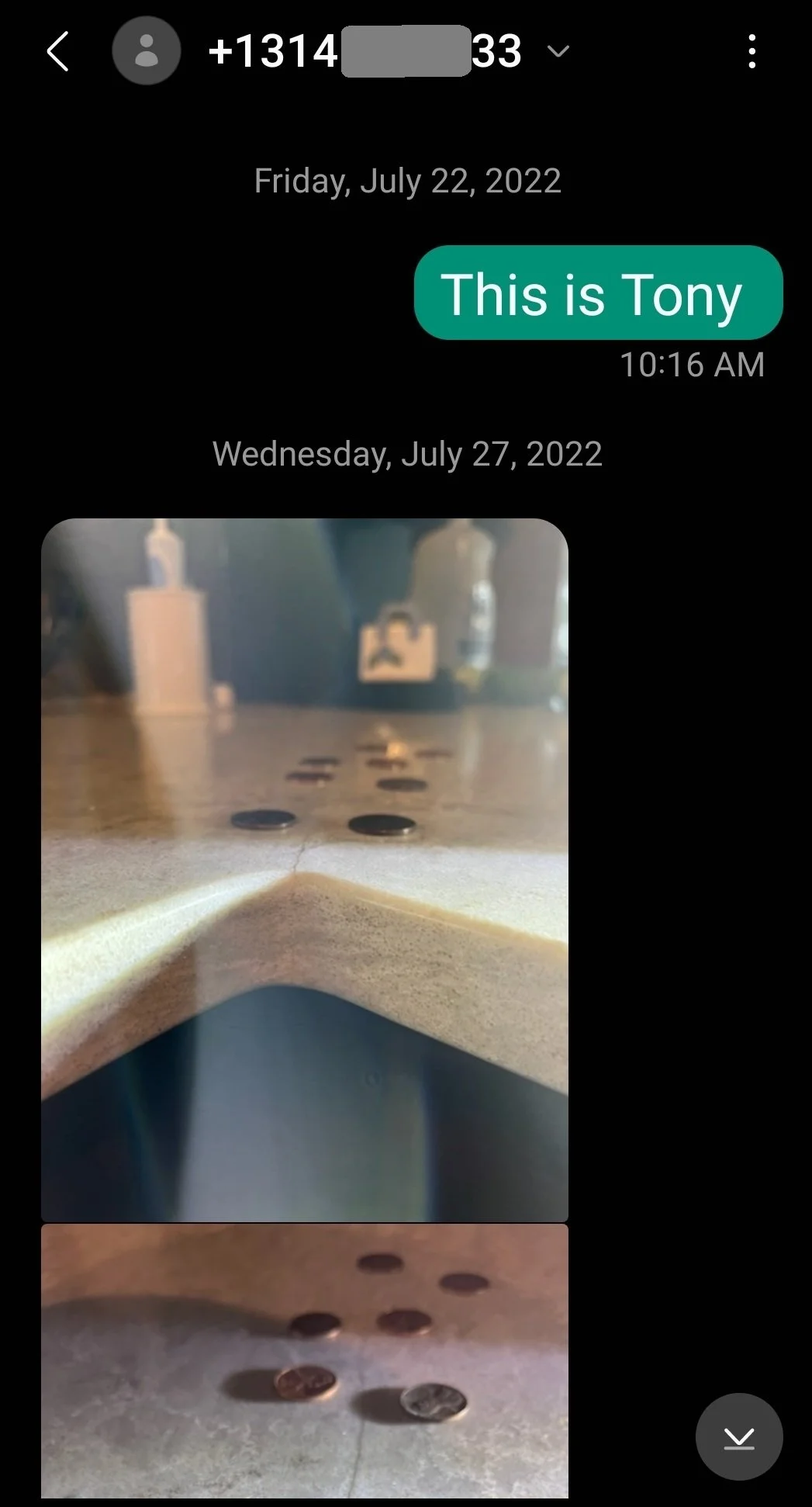 Below is my initial text communication with the client, giving him my personal mobile phone to easily access me by.